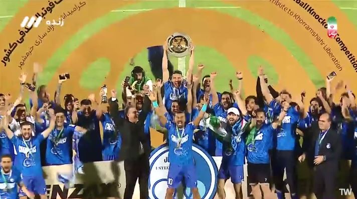 لحظه بالا بردن جام قهرمانی حذفی توسط استقلالی‌ها